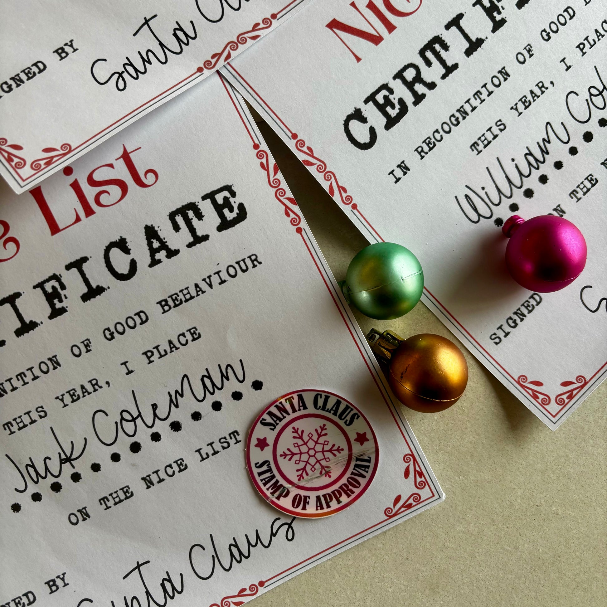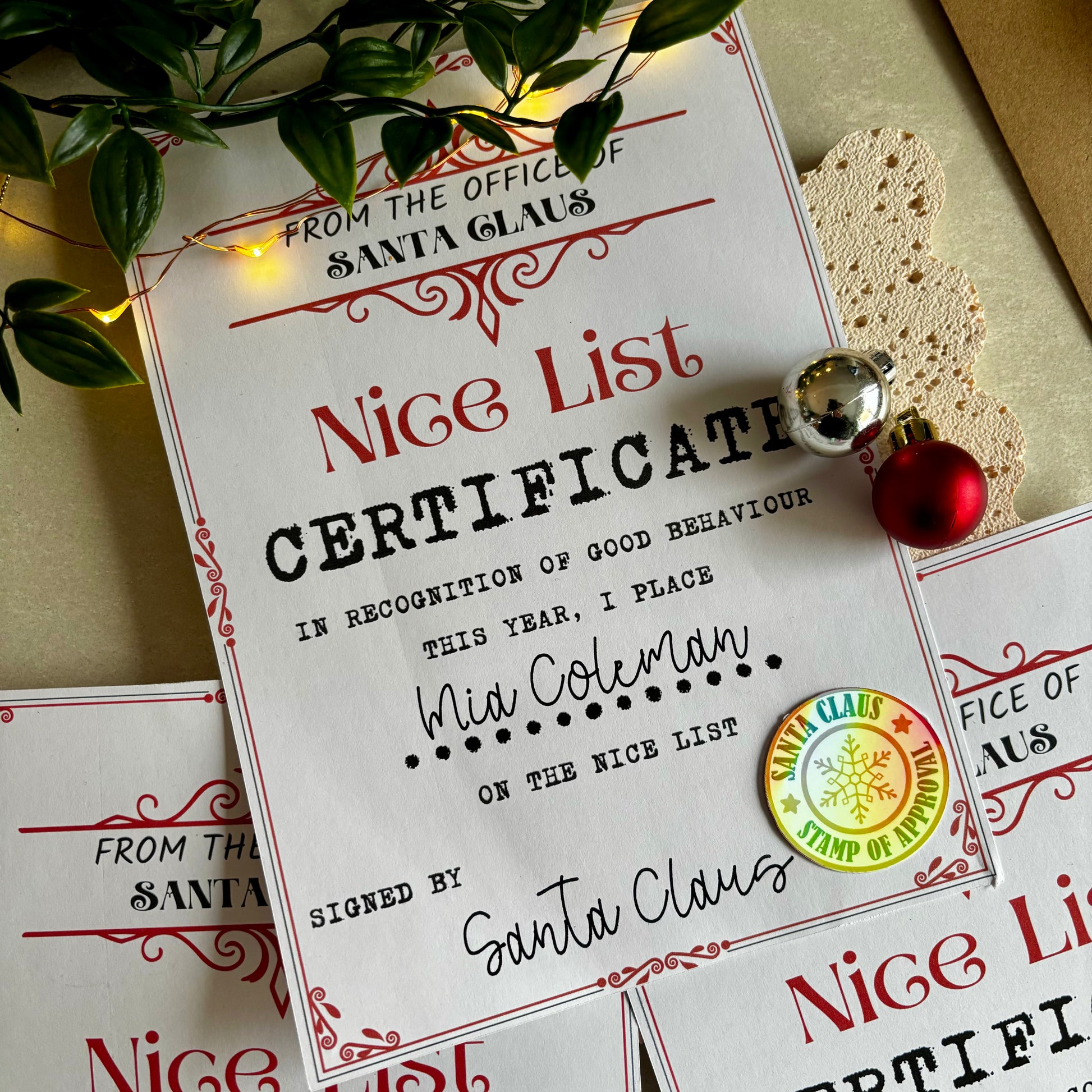 Experience the magic of the holidays with our high-quality Nice List Certificate, complete with Santa's special holographic sticker. Your child's name and Santa's signature, personally signed by the man himself, will make this certificate one to treasure for years to come!