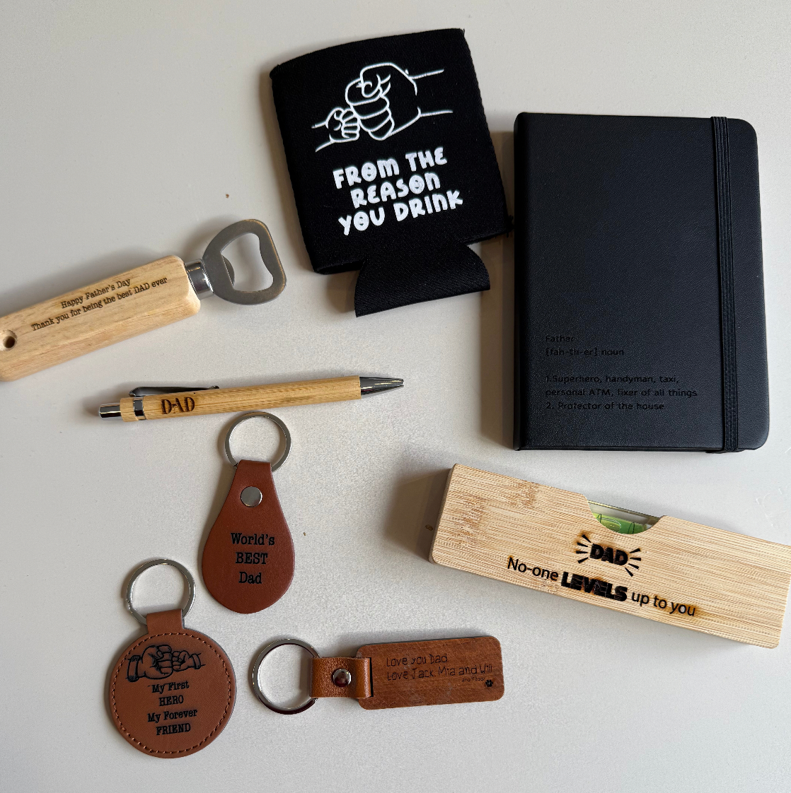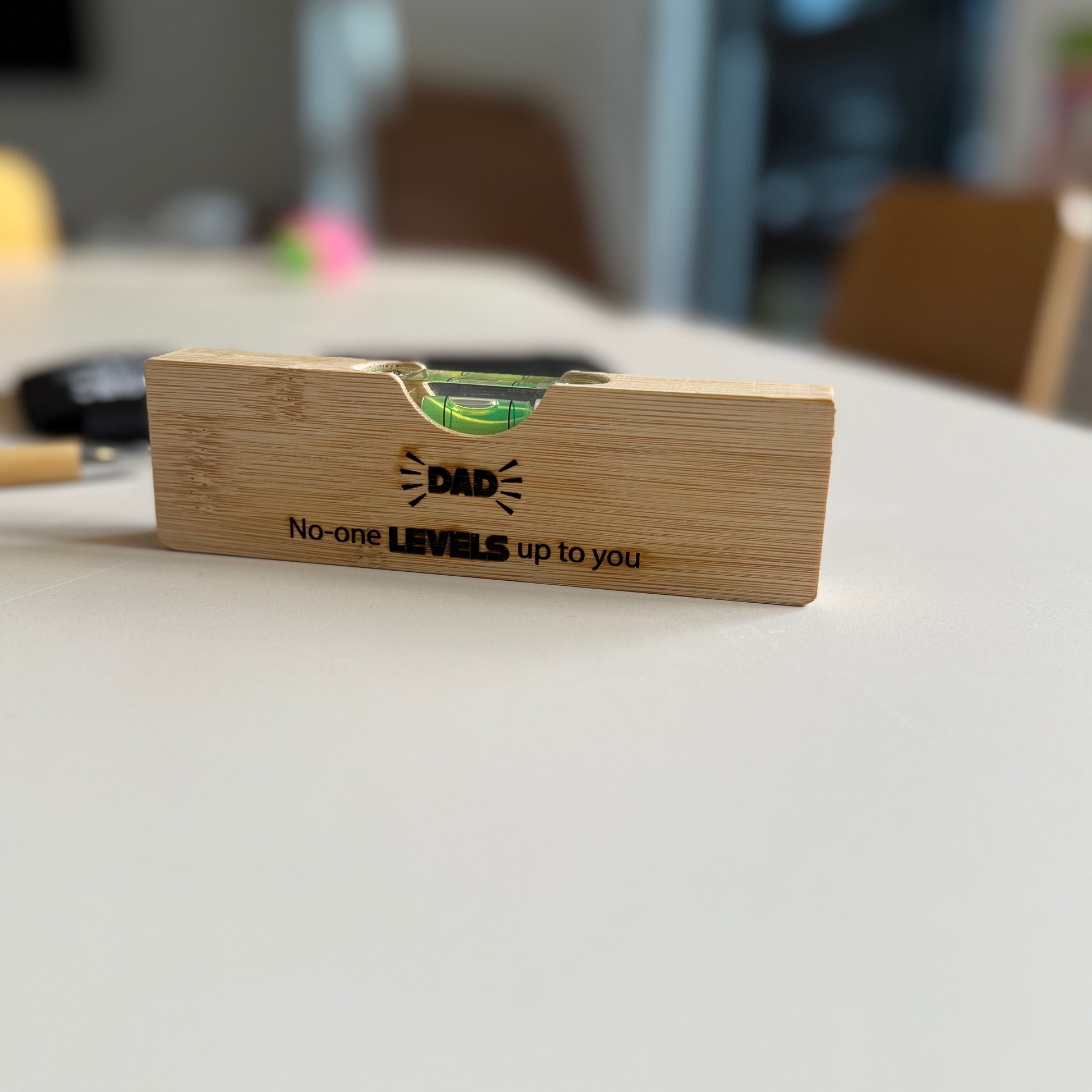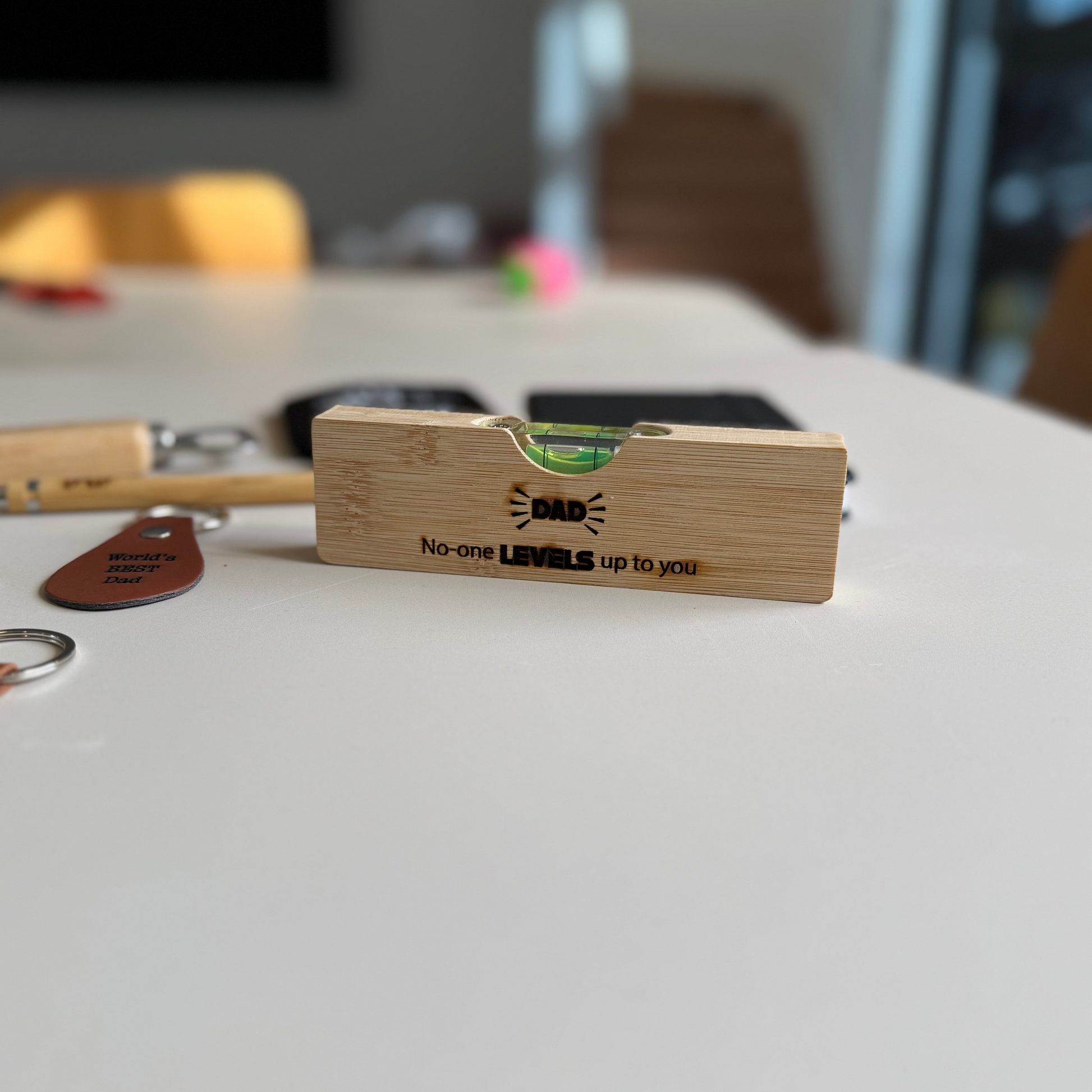 The Bottle Opener/Level Tool combines functionality and style with its personalised bamboo timber design. This unique all-in-one gadget serves as a reliable level for your DIY projects while also doubling as a convenient bottle opener. Crafted from sustainable bamboo, it’s both durable and eco-friendly. Perfectly tailored as a thoughtful gift for dad, it adds a personal touch to his toolkit or bar essentials. Whether he's fixing things around the house or enjoying a cold drink, this versatile tool makes every task easier and more enjoyable. Give a gift that’s practical, meaningful, and built to last.