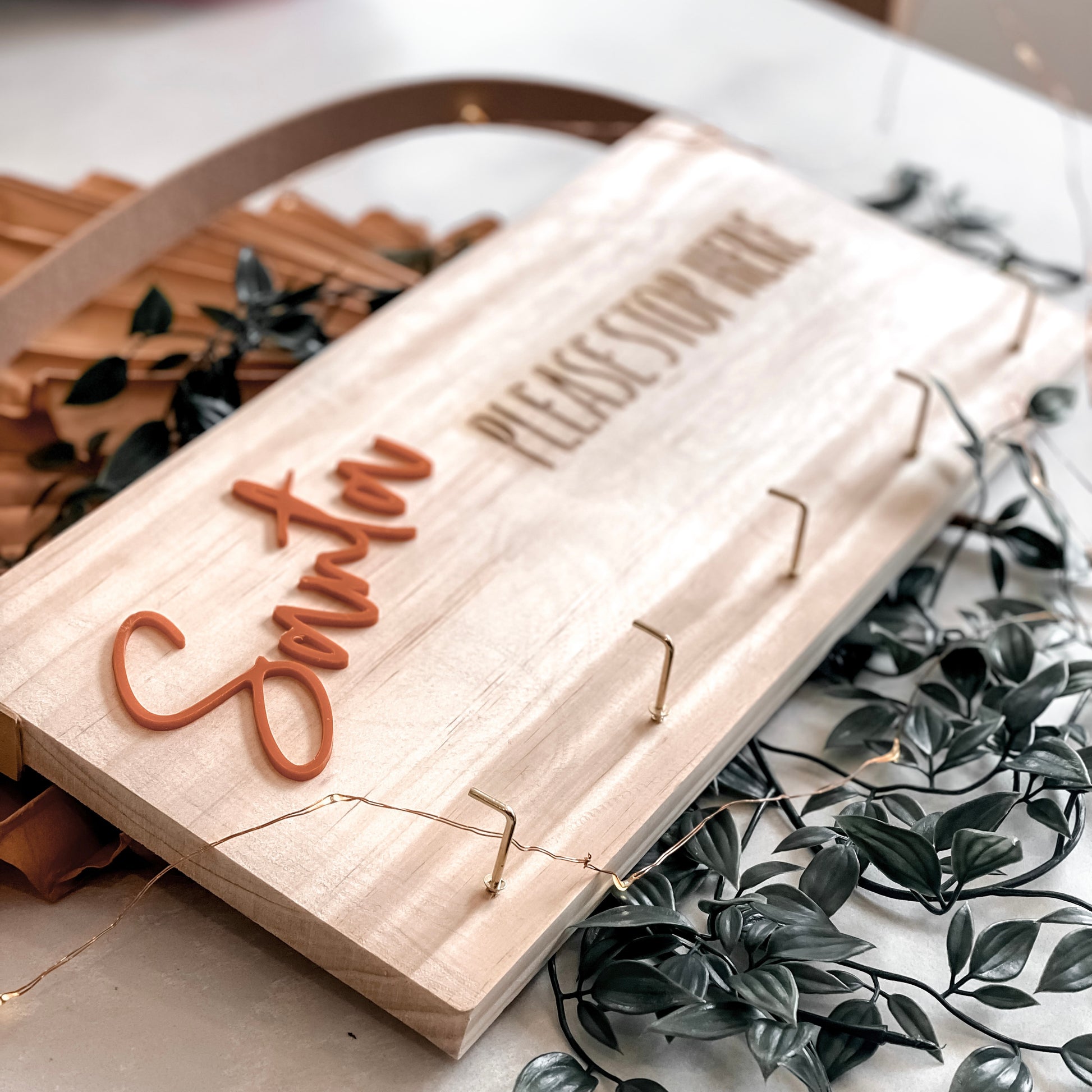 A personalised timber stocking holder perfect for a family of 2 or more. Each piece is designed and handmade by Mocked.