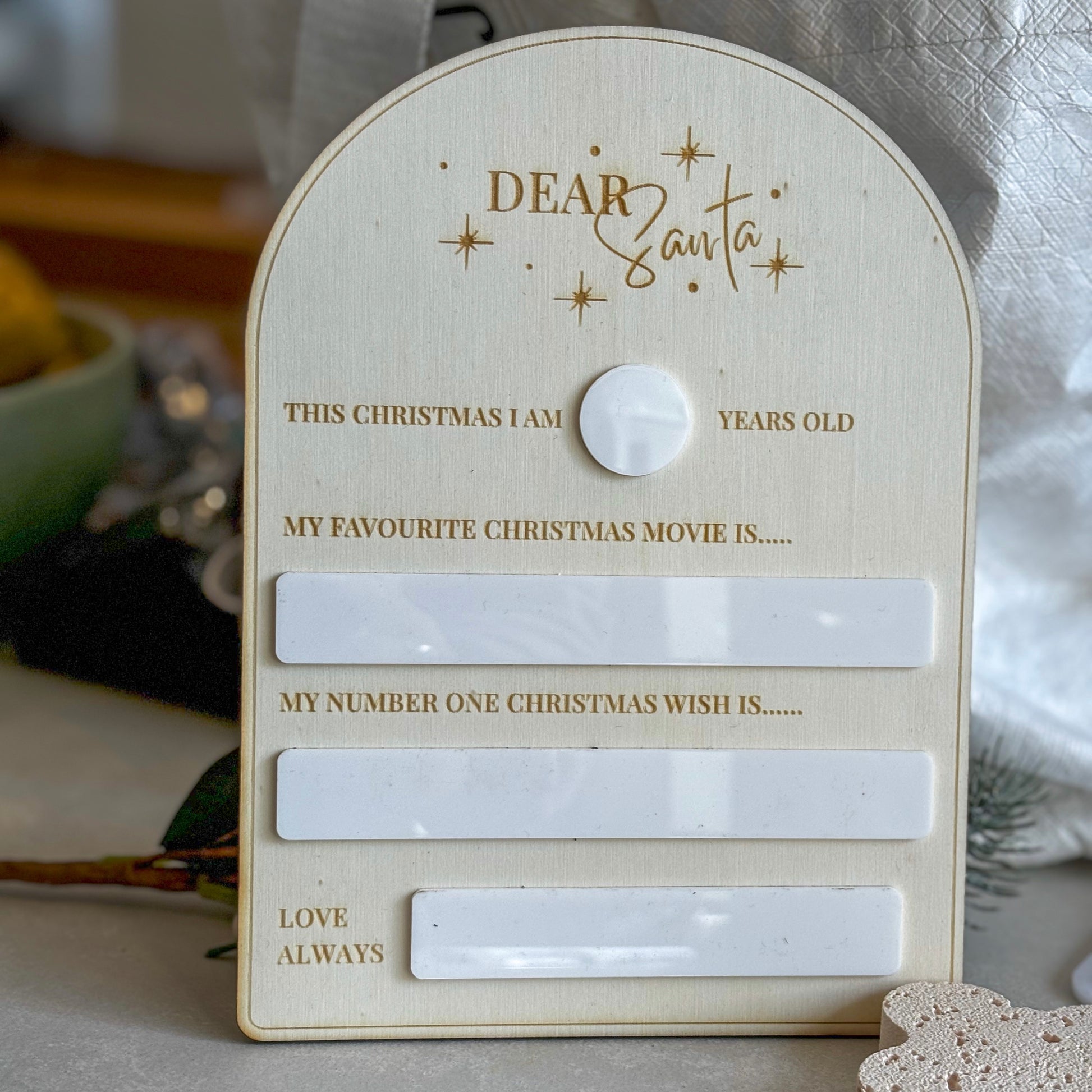 The Christmas Wish List allows kids to jot down their top Christmas flick and desired presents from Santa. Each plaque is set on 3mm plywood with 2mm acrylic white erasable accents which makes writing quick and easy.