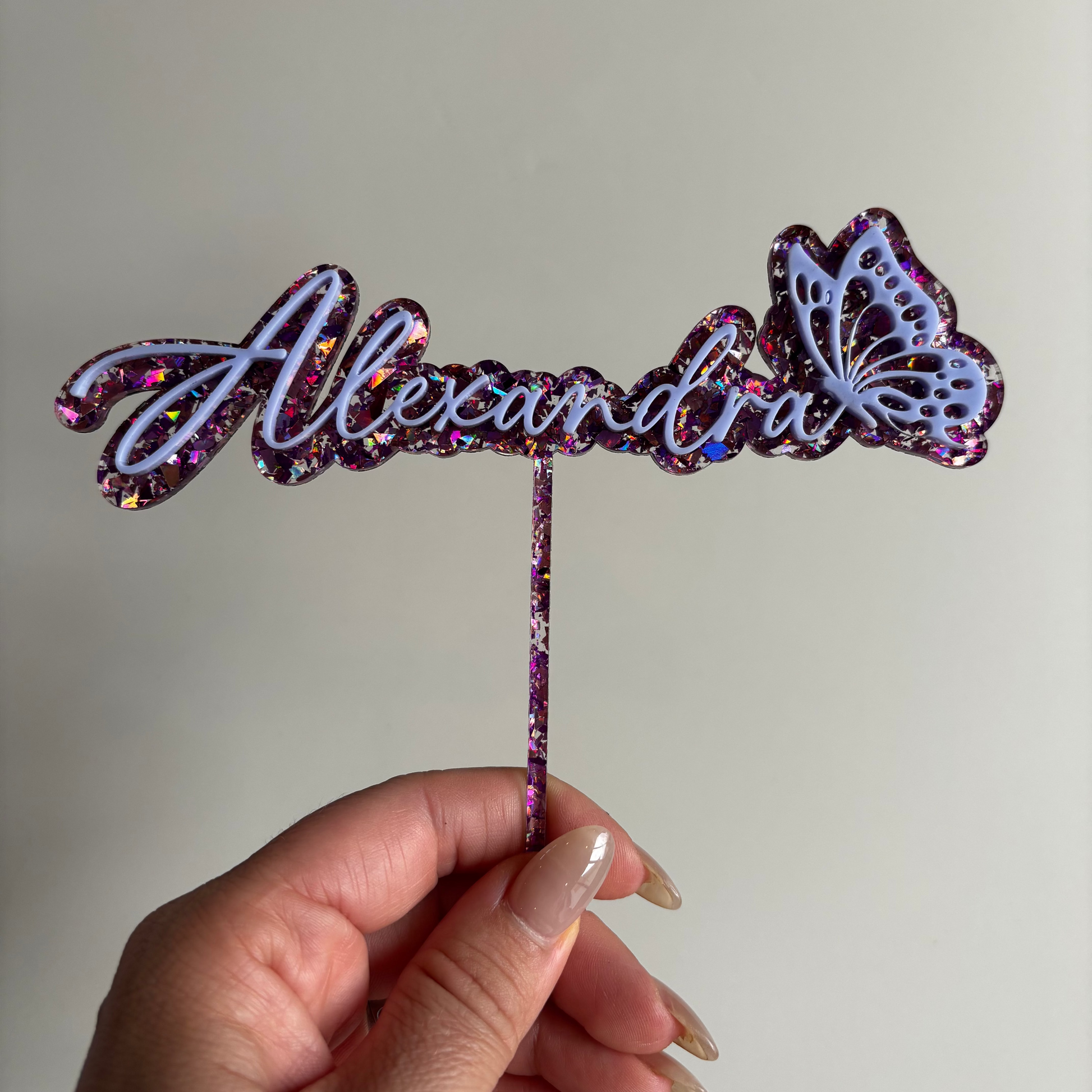 Custom design cake topper with your childs name written in script and adheared to a coloured cake topper. Only choose this option if you would like a topper with JUST your child's name.