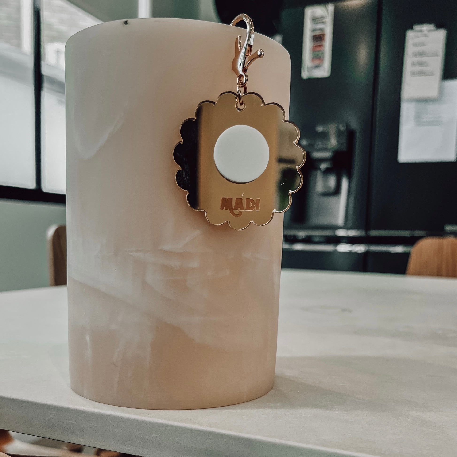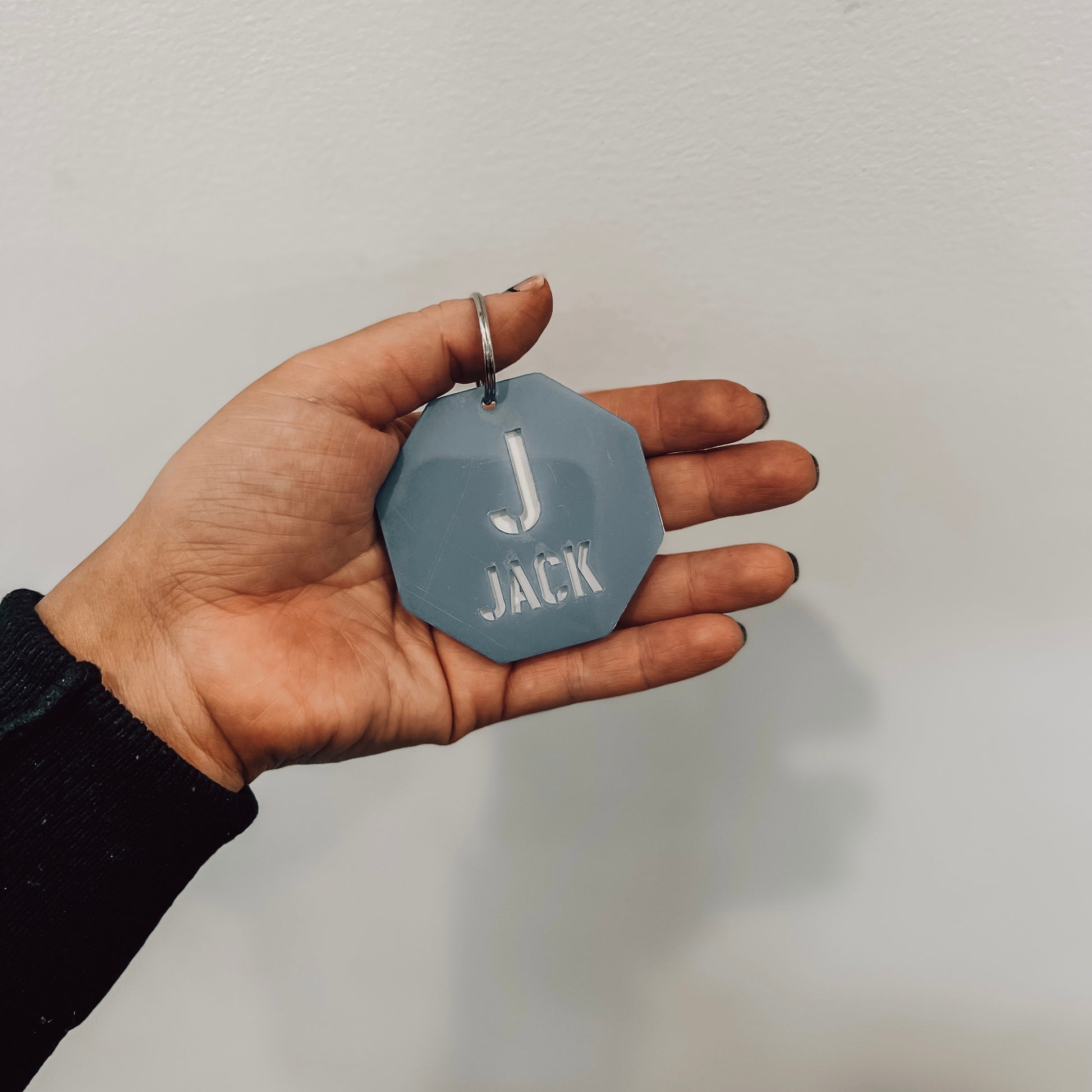Personalise your keys, bag, pencil case the possibilities are endless. Manufactured from 3mm acrylic measuring approximately 60mm diameter all tags come with a keyring and are personalised to your design. Use the notes section upon checkout if you would like to customise your key tag ie. different acrylic colour, different shape cut out etc. Use the custom field to state the name.